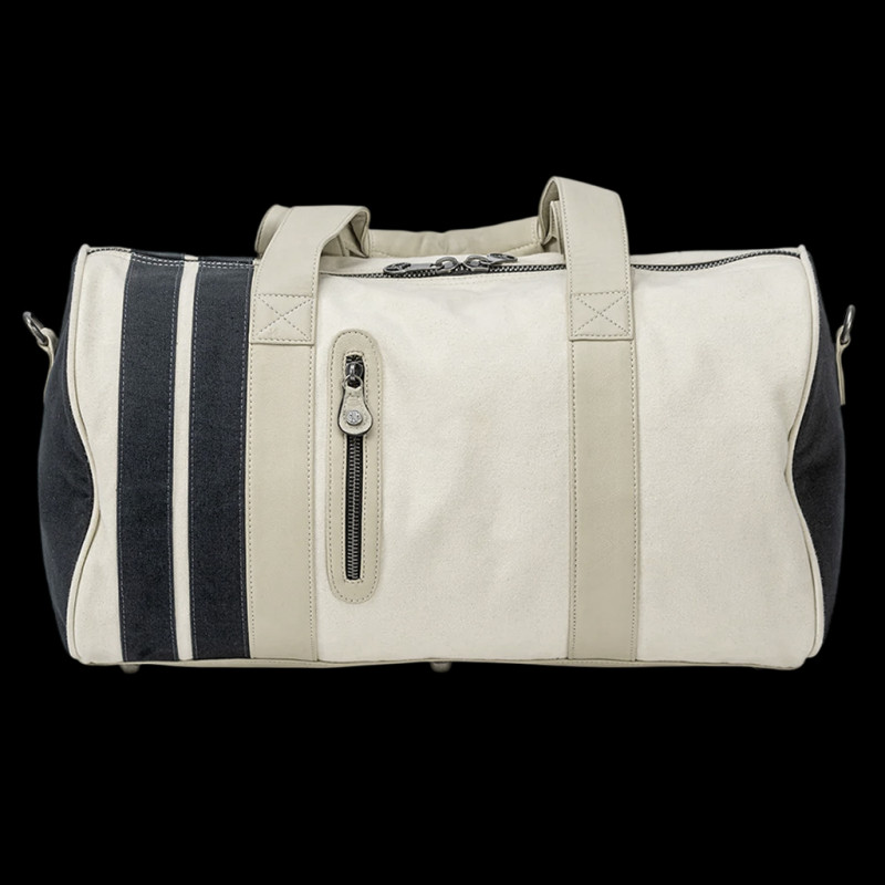 Shelby Sport Bag in Leather and Canvas Ecru / Navy Blue Stripes