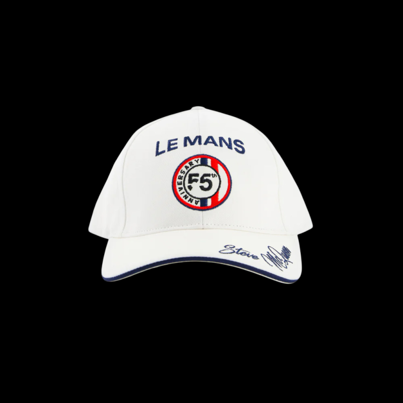 Celebrate 55 years of legend with the Steve McQueen x Le Mans anniversary hat in white, a direct tribute to the cult film and the spirit of the Sarthe circuit. Its baseball-style silhouette in cotton twill, with a curved visor and contrasting trim, gives it an iconic style that immediately appeals to motorsport enthusiasts. Premium embroidery on the front and visor, contrasting piping, and lettering on the back commemorate the 55th anniversary, while the embossed metal buckle allows for precise adjustment and optimal comfort. A collector's item, ideal for completing a Steve McQueen x Le Mans look or for your track days.