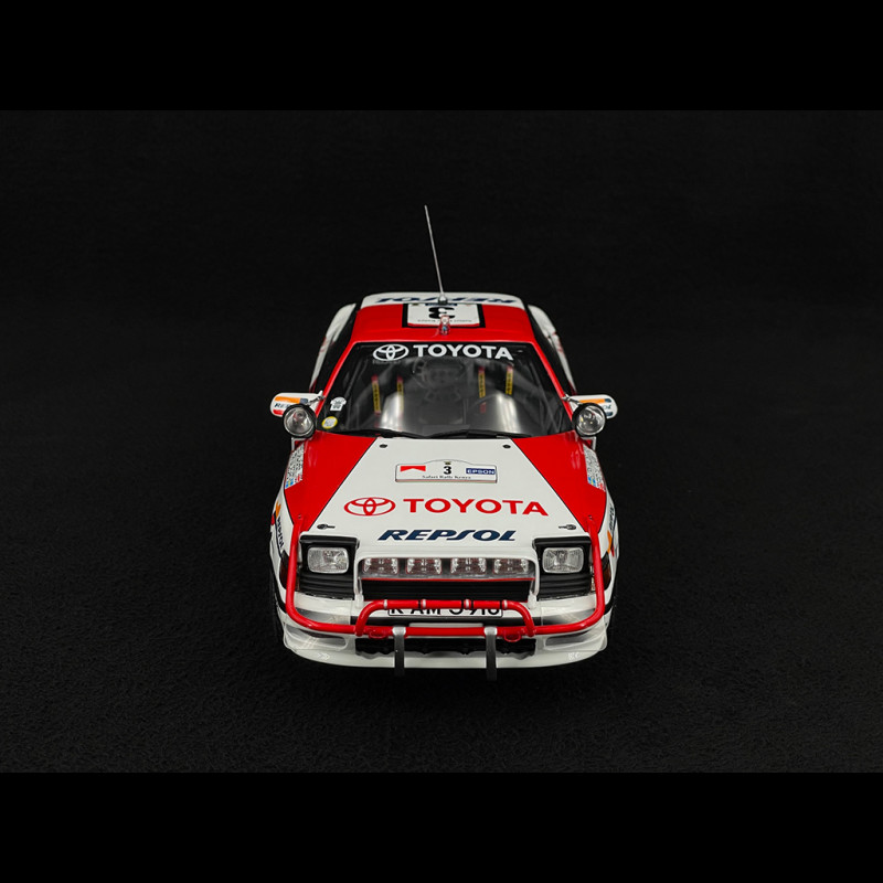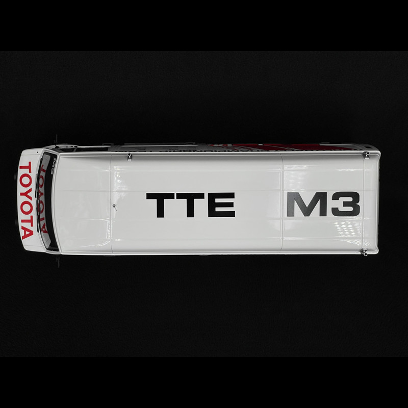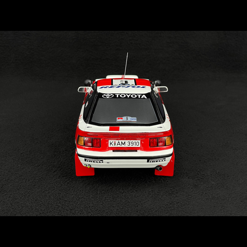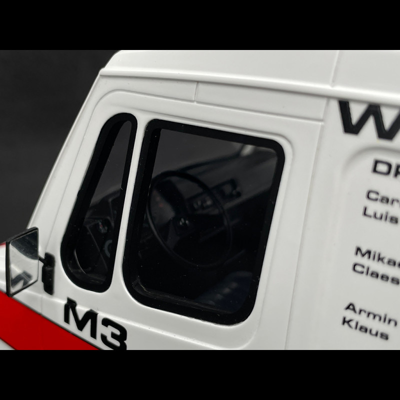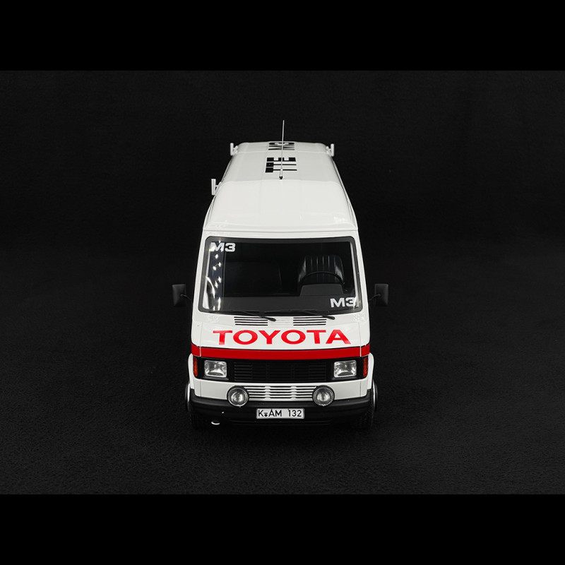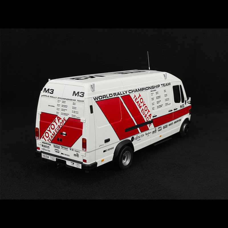 This Ottomobile 1/18 scale model set reproduces the Celica GT-Four rally car accompanied by a Mercedes-Benz T1 support vehicle and a trailer, offering a complete competition scene. Made of resin with a meticulous finish and limited edition, the set highlights the atmosphere of African rallies and is a particularly attractive piece for collectors of historic WRC models.