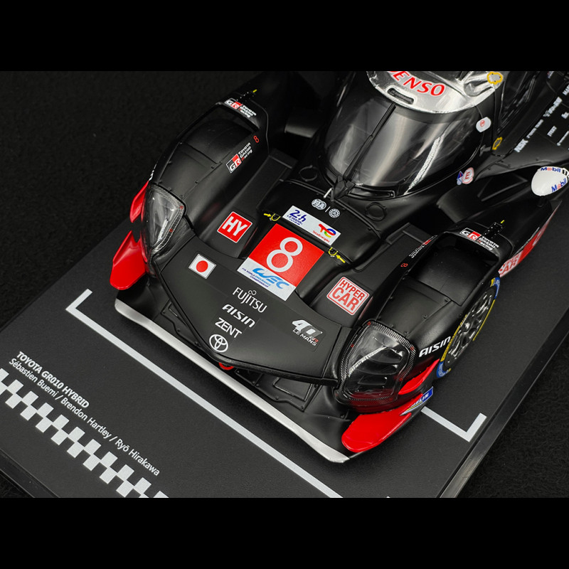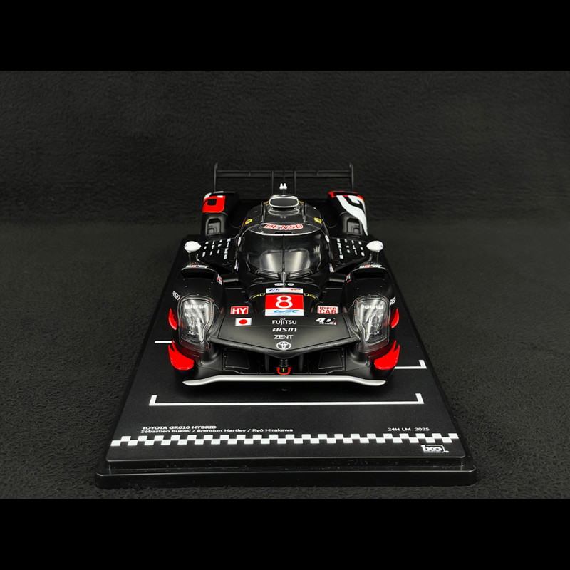 This 1/18 scale Toyota GR010 Hybrid #8 24h Le Mans 2025 model by Ixo reproduces the TOYOTA GAZOO Racing Hypercar with its commemorative red and white livery, low and aggressive proportions, and all the official team markings. Made of resin, the miniature highlights the aerodynamic details (wing, endplates, diffuser), the racing wheels, the Buemi/Hartley/Hirakawa names on the interior, and a display stand, making it perfect for completing a 2025 Hypercar collection alongside the #7 car and its rivals Ferrari, Porsche, or Cadillac.