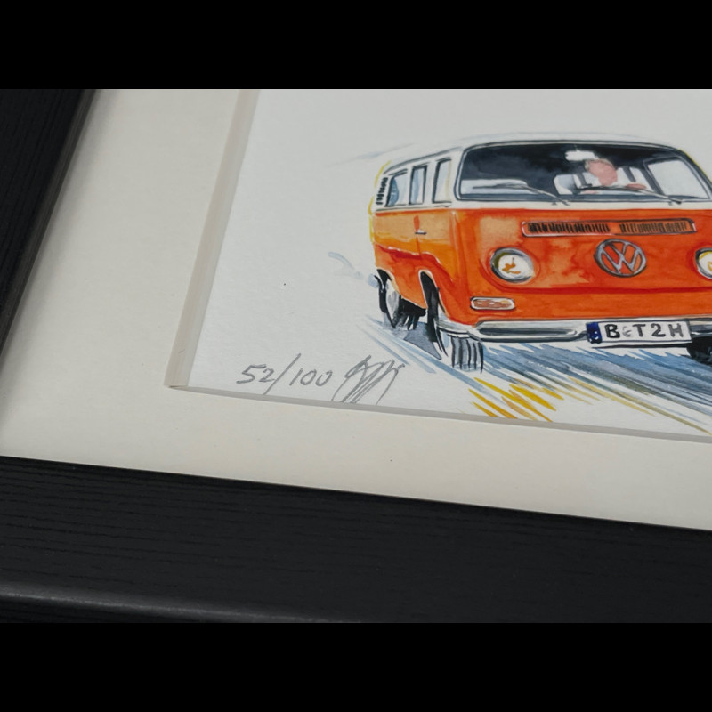Volkswagen Frame Combi T3 Bus / T3 Westfalia / T2 Pickup Black Wooden Frame 38 x 15 cm - Uli Ehret